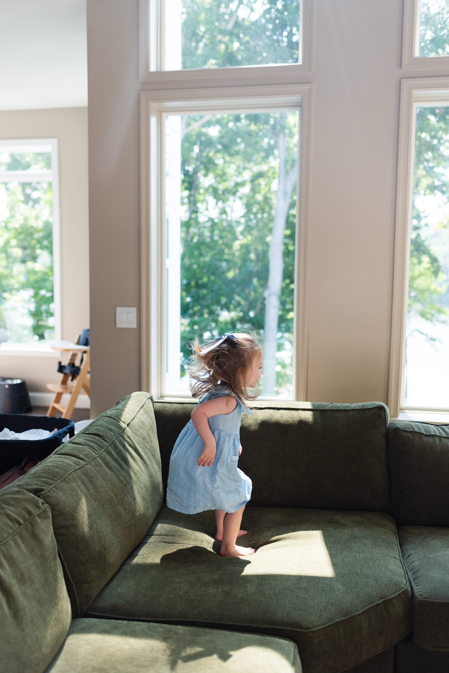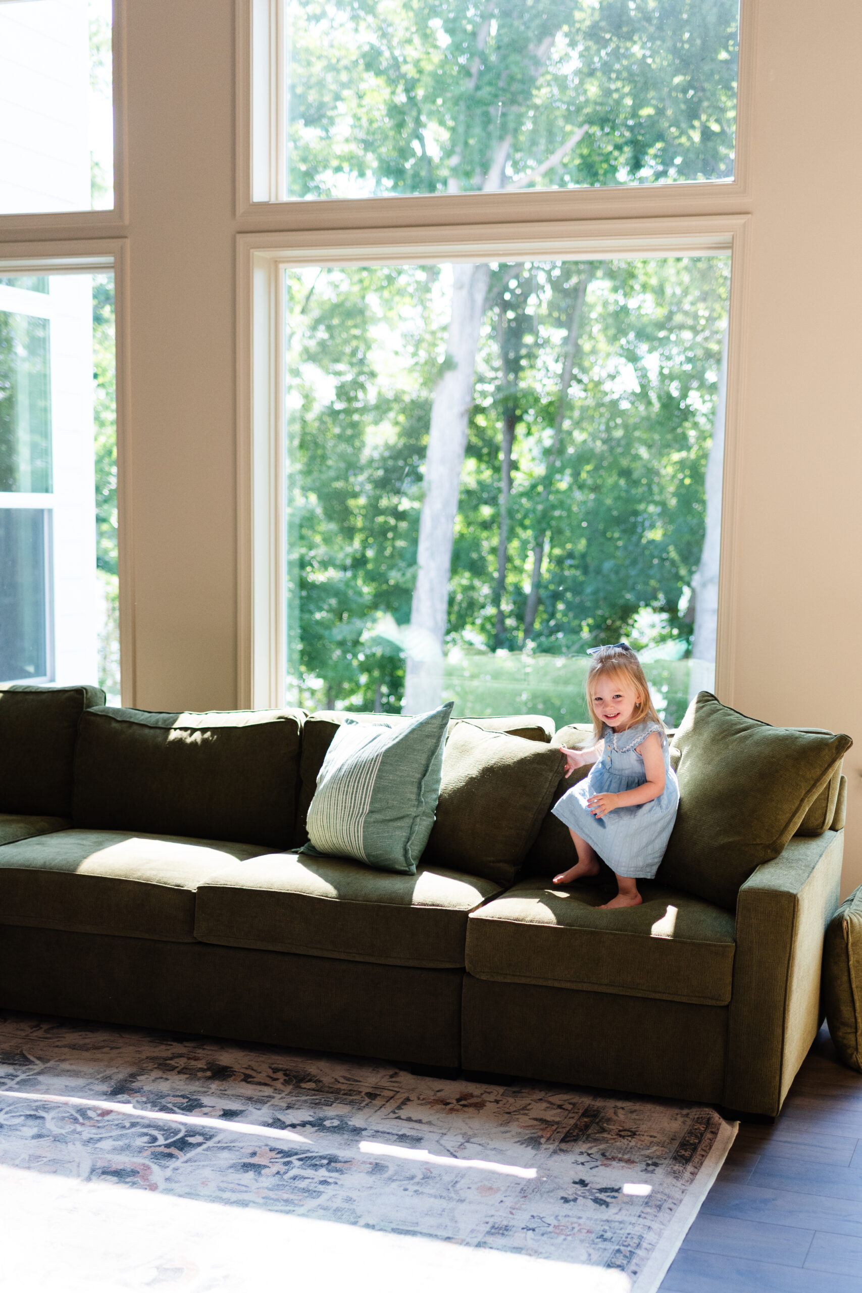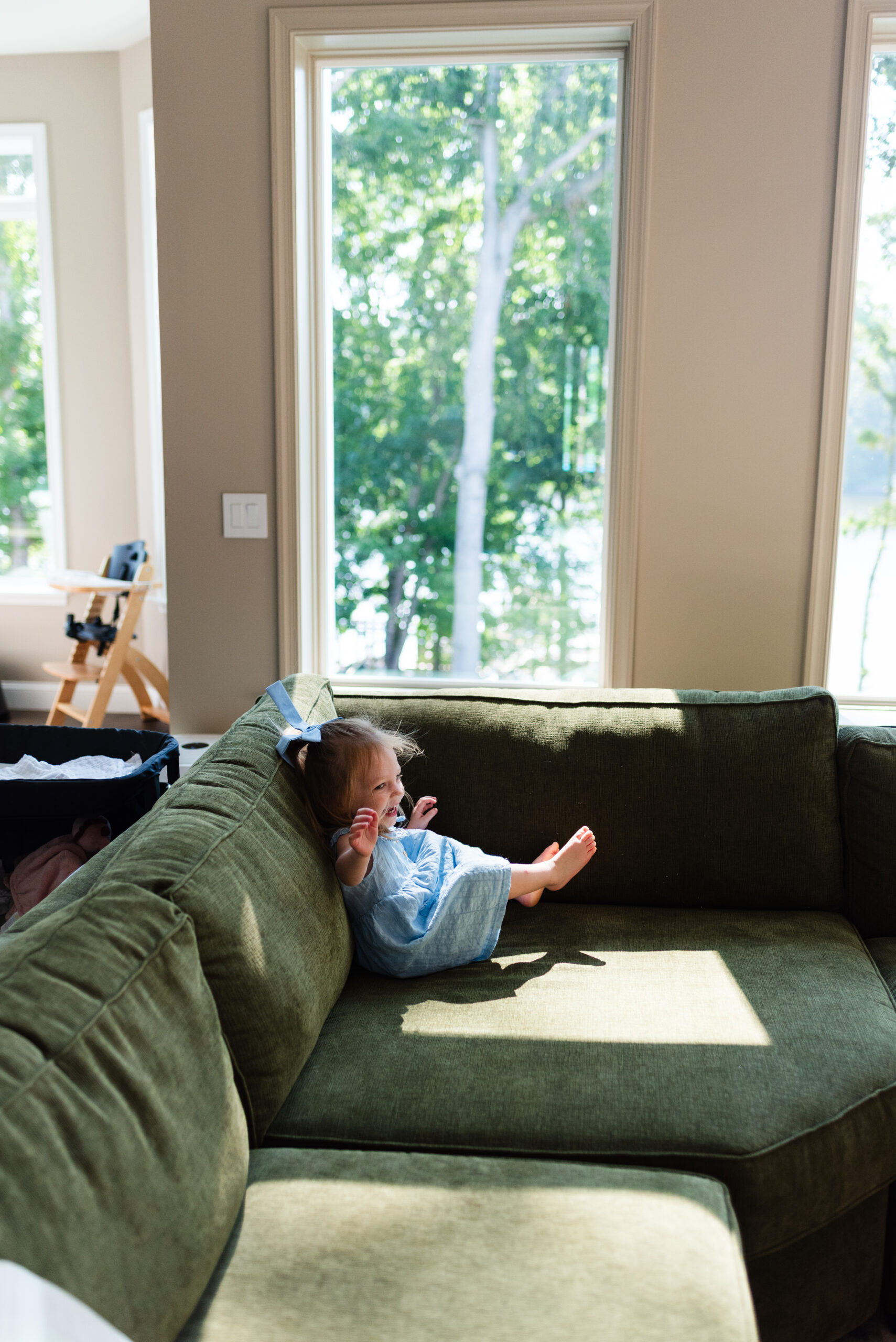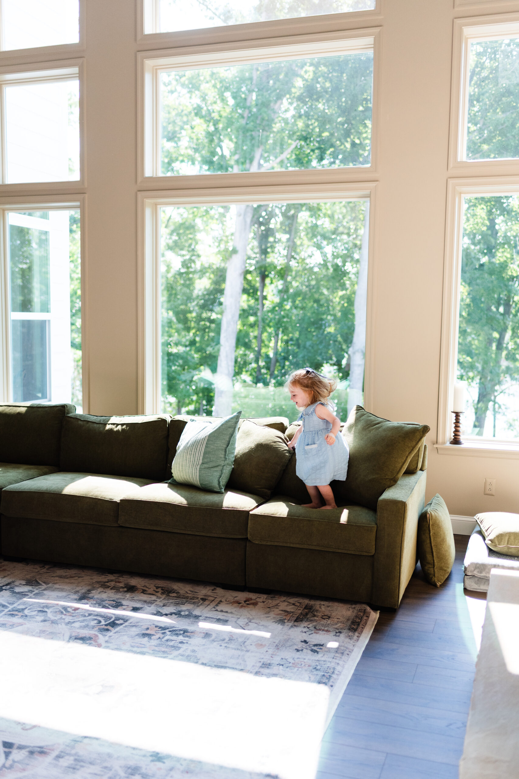 Amid a blazing heatwave, the delivery of wood via barge for their neighbor’s dock, and a flurry of hugs, I was welcomed into the Carroll's home on a July morning. I gasped at their perfect green couch and stunning windows which were an actual dream!