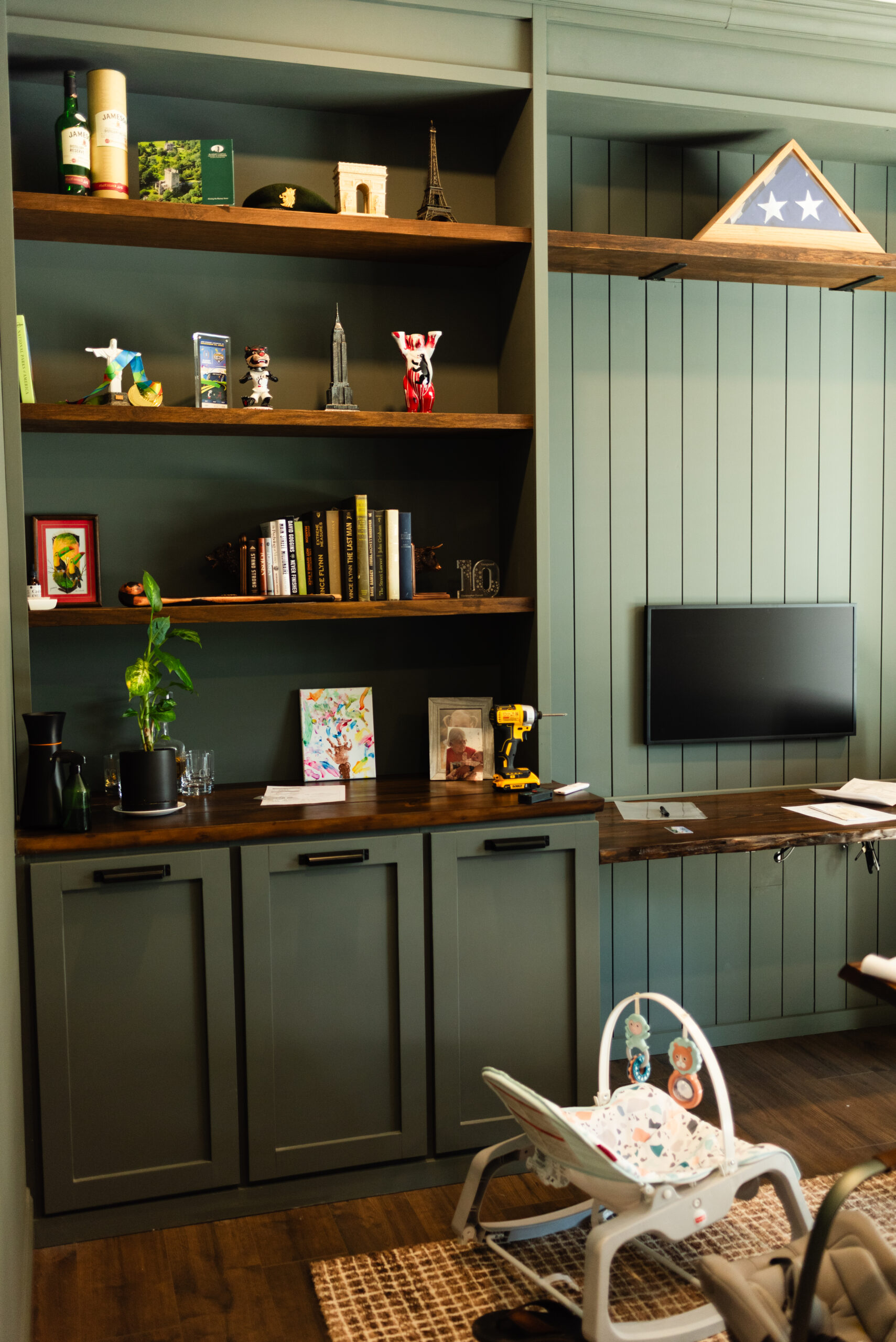 We took photos in the living room with sunlight just pouring in, by the fireplace Chris put in, in the room he decided to paint himself. After a doorway peek in his office I spotted little his little girl's artwork and his great grandfather's flag framed up just like my grandfathers flag was and I cried. We stood around the kitchen island and laughed about our toddlers and the dog nudged my camera suspiciously until I patted her head. Worship music drifted into every room as life quietly, joyfully held us all captive to another miracle’s arrival.