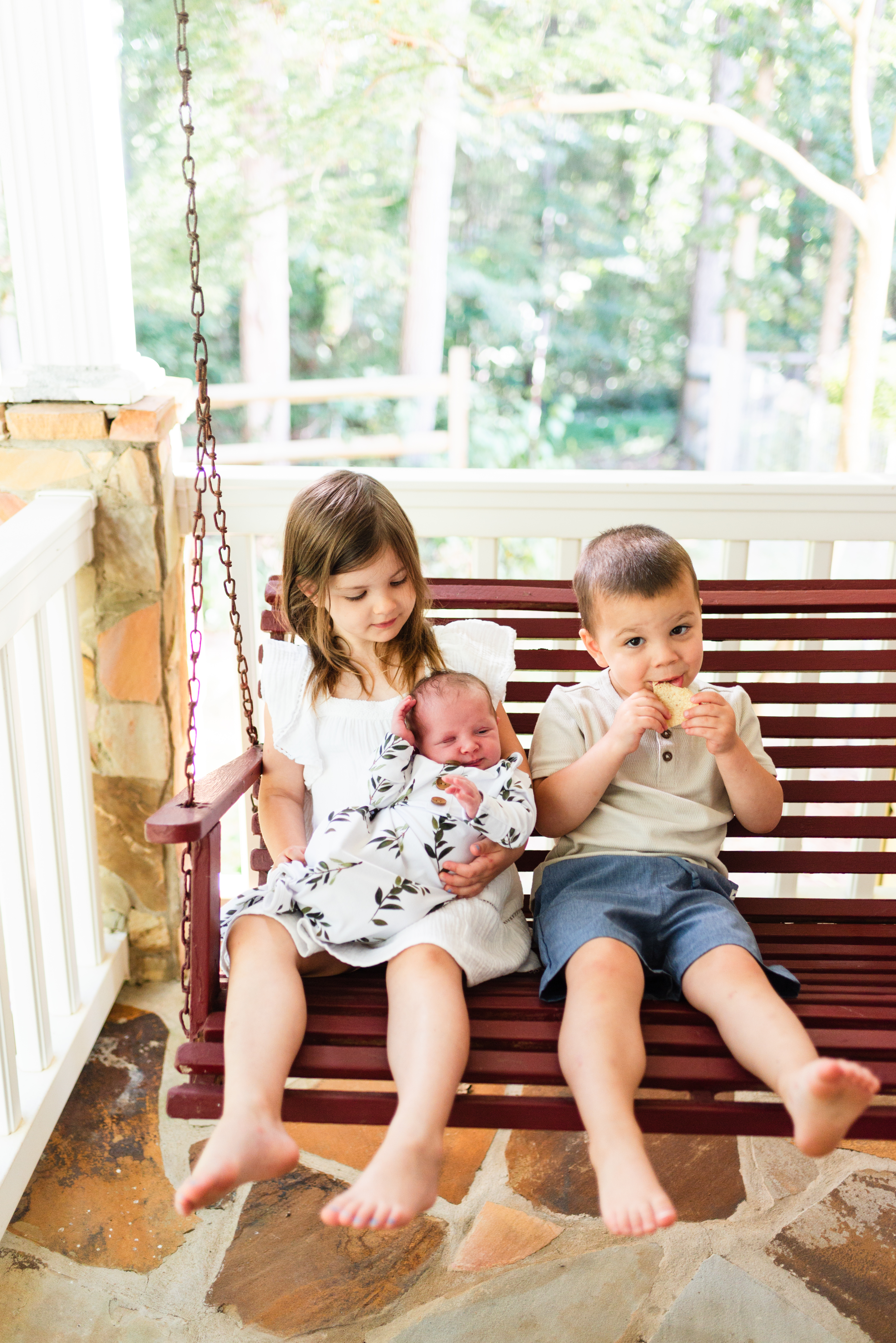 I drove a few winding roads, past a few horses and up a hill and there was the house in a wooded glen. I was welcomed in to toddler cheers, a dog that wanted to be seen & loved and a cat that wanted to be pasted to my side. The busyness of life didn’t stop because I had arrived, it just swirled around me as we sipped coffee in the kitchen and chatted about the flowers the owner before had planted to bloom in every season. We bribed the little ones with tortilla chips to be still for 2 minutes (so real) and everyone cuddled around the newest Ingle: little baby Ella. The Ingles made me feel like family on a Monday morning and I'll never forget it.